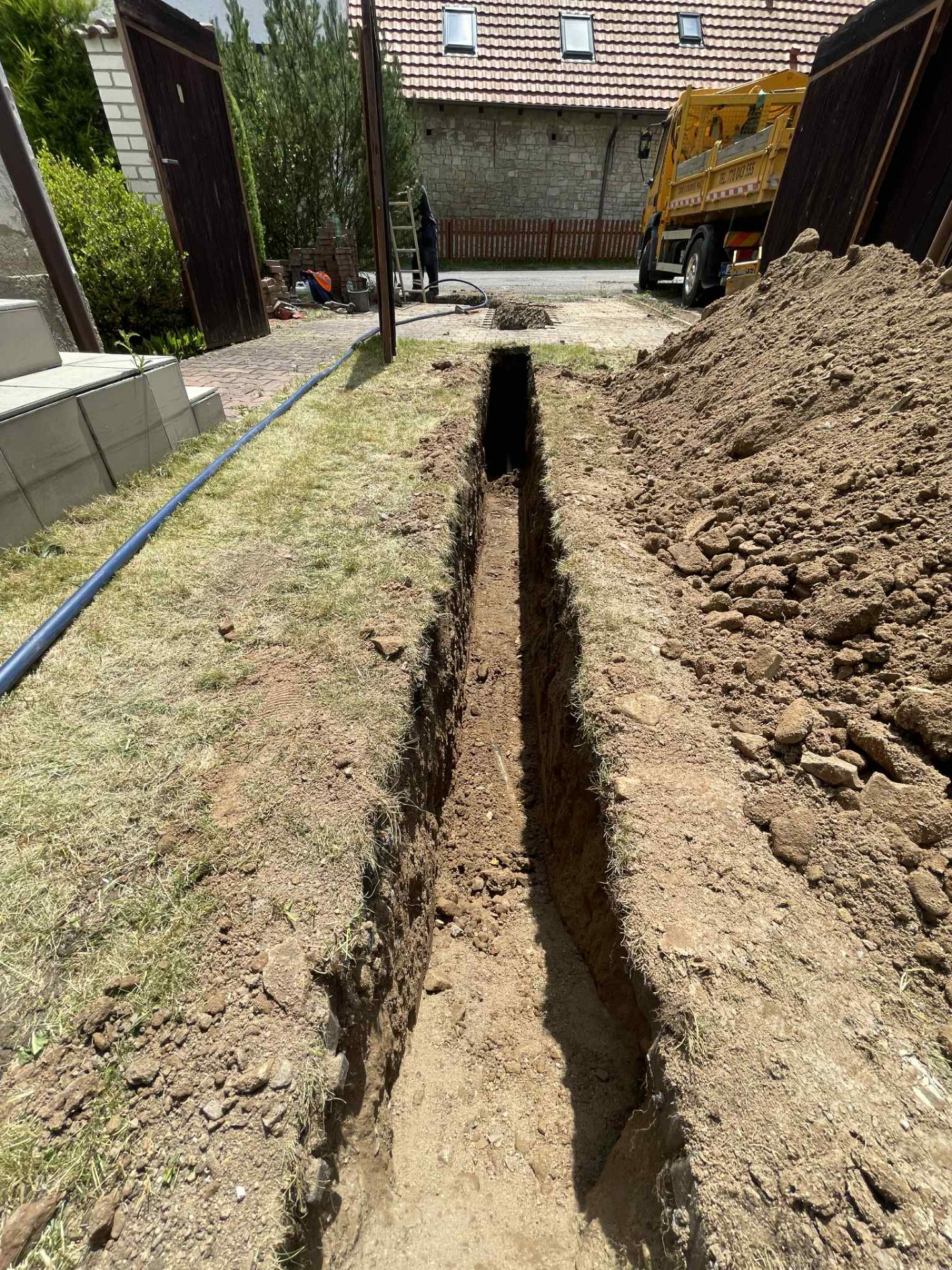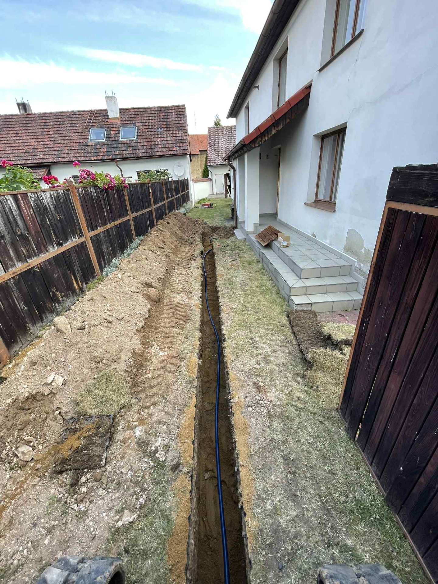 Včetně bezpečného zajištění výkopu, uložení potrubí a následného zásypu.